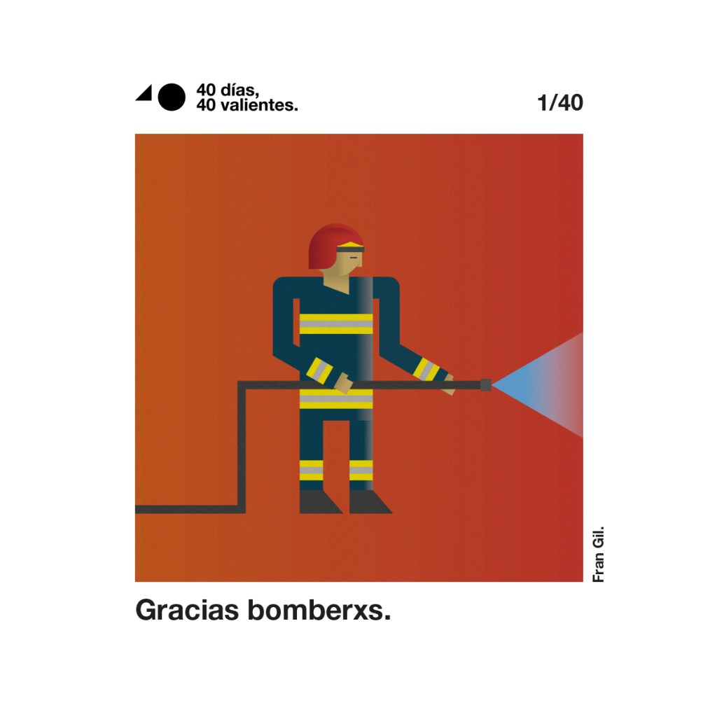 “Nuestro primer GRACIAS en mayúsculas va dedicado a todos los bomberxs, esos “superhéroes sin capa” que están desarrollando una gran labor en la lucha contra el coronavirus. El autor de esta ilustración es Fran Gil , @frangil80 ,es un apasionado de la tipografía, la cartelería y el diseño en general. Positivo y solidario, ha decidido formar parte de este proyecto porque “es una iniciativa a la que es imposible no sumarse, ya que considero que el arte es una buena forma de crear grandes ideas y conseguir que lleguen a todo el mundo”.”