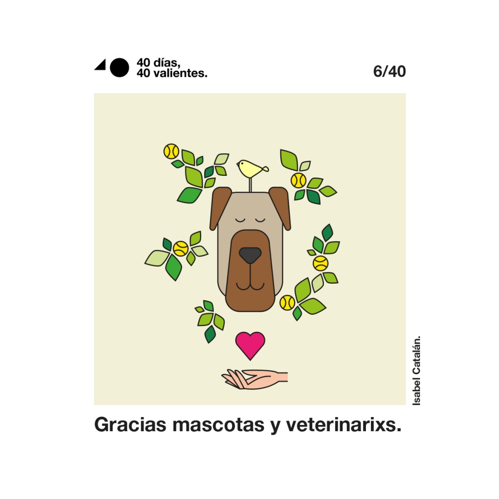 “El sexto reconocimiento es para los animales, que nos dan la felicidad y compañía cada día, sobre todo ahora en tiempos de confinamiento, cuando el minuto de bajar a la calle con ellos sabe a “gloria” y por supuesto por los veterinarixs que se siguen encargando de cuidar de ellos. Y @leticia_powers ha sido la encargada de esta ilustración que representa el amor y respeto que siente por los animales a través del dinamismo, la alegría y ese toque de arcoíris con que se ella misma se define.”