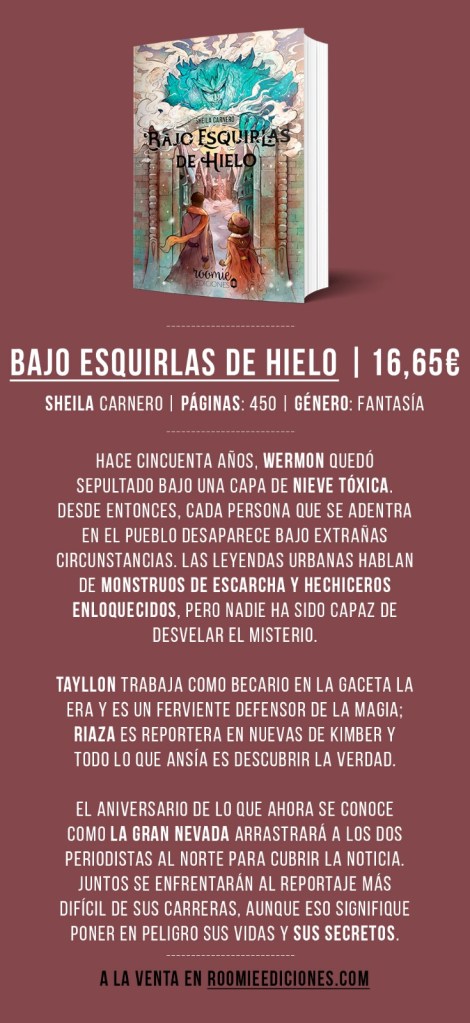 Bajo esquirlas de hielo nació como un relato para la convocatoria de la antología A través de la escarcha que organizó Roomie en 2019. Yo tenía claro que los personajes y el mundo que había creado podían dar para mucho más que quince mil palabras, por lo que, si no me seleccionaban, sabía que terminaría escribiendo algo más extenso. Por suerte, la editorial pensó lo mismo y me propuso convertir el relato en novela. Admiro mucho su trabajo, es increíble la dedicación y el mimo que le ponen a cada libro, y no dudé en enviarles una propuesta editorial que, por suerte, aceptaron.