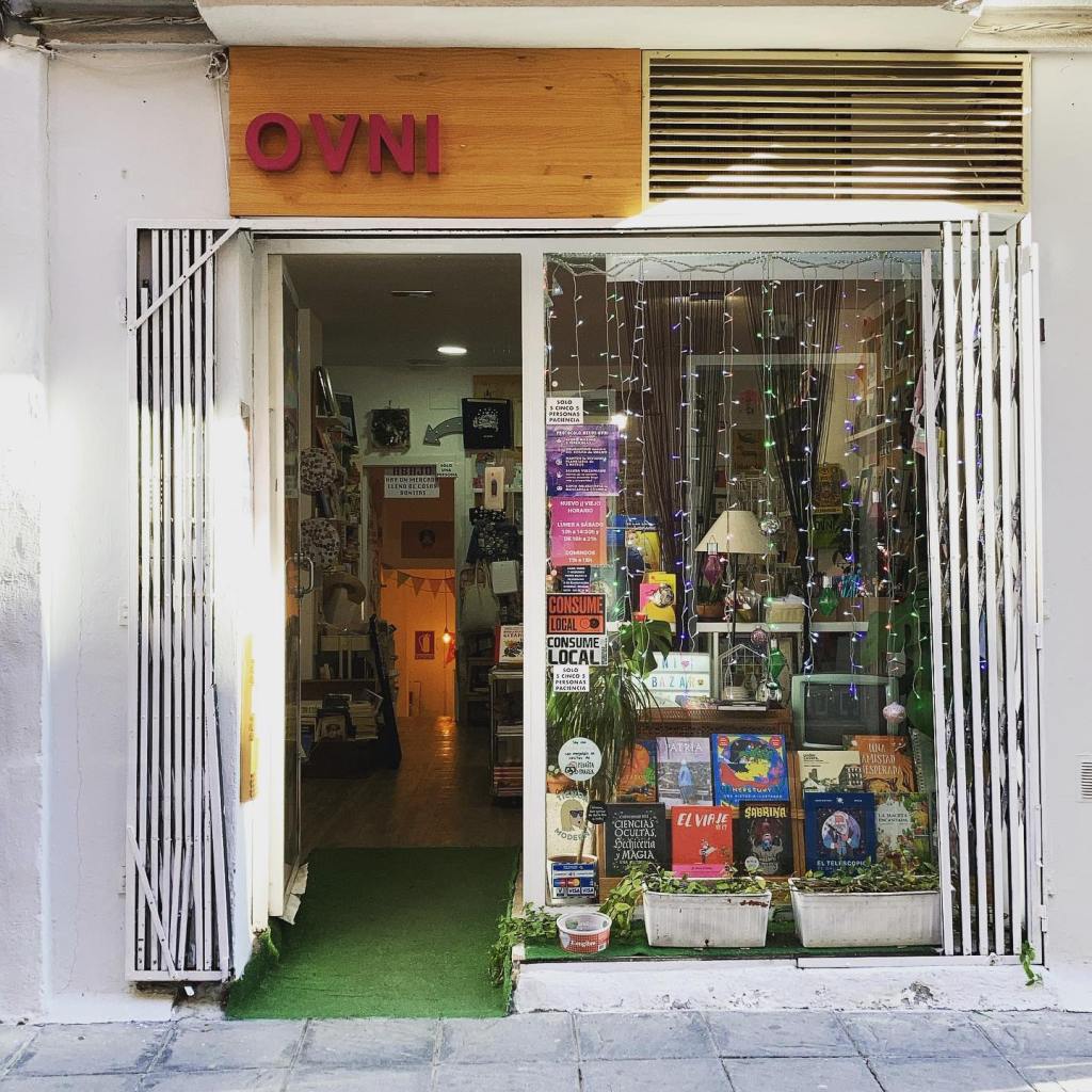 OVNI es una fantasía de tienda, os lo digo yo, pero es que verla nacer ha sido una aventura para Lucía: Ella estudió Bellas Artes y ha trabajado para el mercado francés y americano como colorista y maquetista. Ha trabajado también en la Universidad. Estudió Artes Gráficas y estuvo trabajando de eso, hasta que hace más de nueve años montó su editorial Libros de Autoengaño, con la que continúa, pero ahora, como dice ella “con una vida tranquilita”. Fue entonces cuando en una gira por ferias de libros alternativas, en 2016, se le encendió la bombilla a la nave y… Nació OVNI (para gusto de sus asiduas y asiduos), en la supercéntrica calle Duquesa.