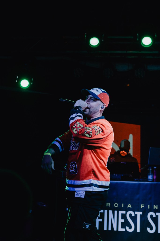 Jayder ya estaba detrás, acompañando al crack que flotaba sobre la tarima. Qué decir de Jayder: el cerebro, tan impecable en la producción del disco como en los platos durante el concierto. Nos tiene mal acostumbrados cada vez que viene a Madrid: solo sabe hacernos mover el cuello.