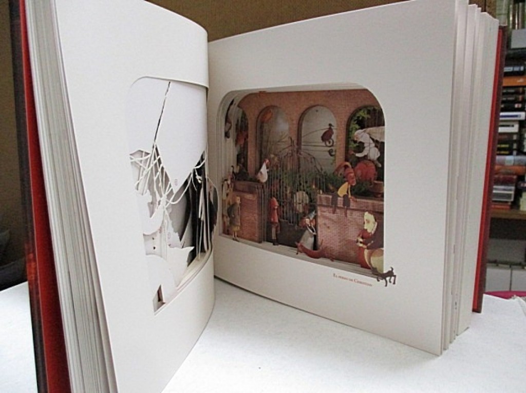 También Rébecca tiene algo que no encontrarás en todos los autores y es que cualquier proyecto que coja lo convierte en una obra de arte: en el pequeño teatro de Rébecca, lleno de personajes troquelados, donde encontramos una historia que se lee al revés y hoja a hoja nos va añadiendo o quitando cosas para contarnos una historia, o en Seda, donde las perspectivas y los personajes cobran vida de forma que casi los ves moverse por el libro.
