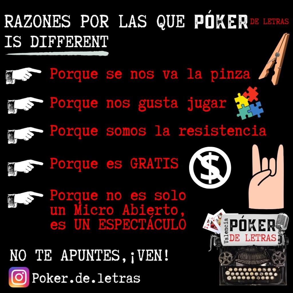 Para seguirnos y ver cuándo hacemos eventos, aconsejamos seguir nuestro Instagram: poker.de.letras.