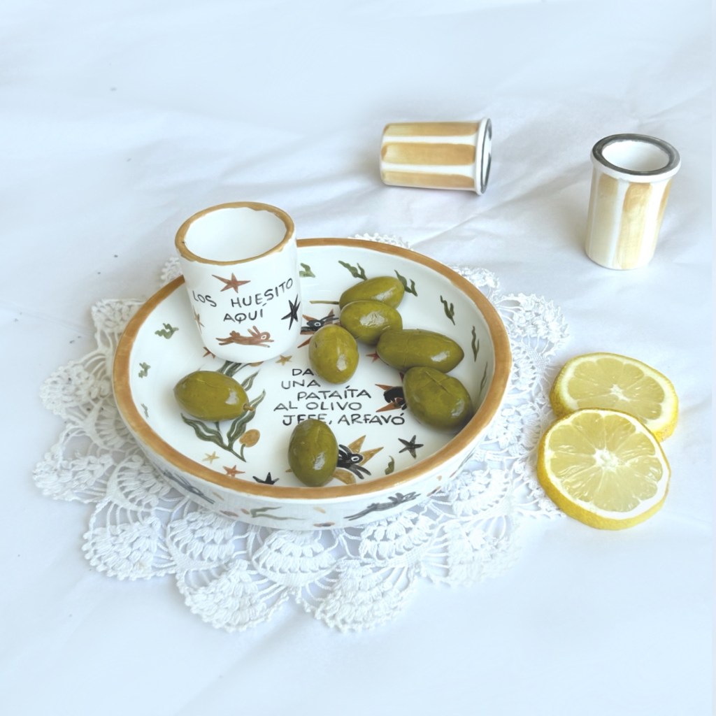 Mi primer plato fue el de curro con la frase “Andalucía is not Spain”, lo hice por probar y ahí quedó. Luego unos amigos que lo vieron me animaron, me informé preguntando mucho, ensayo-error (muchos errores podríamos decir) y ahora no puedo parar. El proceso es el mismo que cuando ilustro en otra superficie, aunque un poco mas limitado por las técnicas que uso.