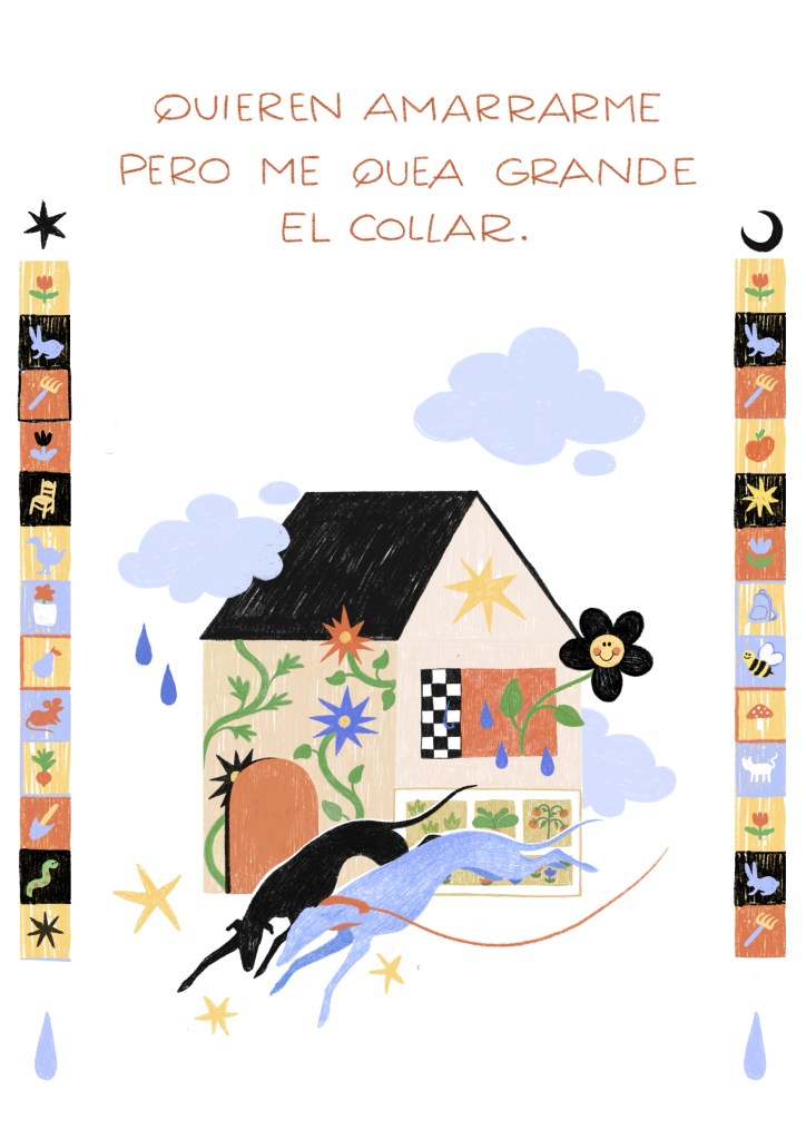 A día de hoy mis ilustraciones suelen basarse en algo que me mueve y necesito exteriorizar, no solo en lo estético. Digamos que no estoy en un punto de “el placer de crear” sino que me muevo más entre la necesidad de expresar, intentar concienciar o plasmar recuerdos y reflexiones. Lo uso más como una herramienta. En cuanto a la técnica, me costó mucho pasarme a lo digital, de hecho ni siquiera tengo ordenador y las gestiones digitales me desquician. Pero la tablet me da la rapidez que no me da lo analógico pa’ la velocidad e inmediatez que exige actualmente el panorama. Vamos, un estrés jaja