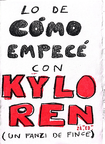 La Fince es una de esas tías cañeras que no se pierde un sarao. Esto es un hecho. Me parece en el BOE ya dijeron que era un nuevo artículo de la constitución; si organizas algo de fanzines, tiene que ir la Fince. Es LA LEY, como diría Juez Dredd. Este pequeño fanzine suyo es brevísimo, pero ahonda en esa parte que a muchos se nos olvida de la palabra fanzine; fan. En estas pocas páginas en un formato reducido, con una impresión, montaje y acabados manuales, Fince nos cuenta cómo conoce y se enamora del fanfic de ReyLo, muy popular durante los Episodios VII y VIII de Star Wars entre 2015 y 2019 y finalmente consumado en el Episodio IX, en una de los peores guiones que yo recuerdo haber visto en cine. Es una movida súper divertida a la que debéis echarle un vistazo que nos recuerda que, pese a quien le pese, la mejor literatura de este siglo se está haciendo en Wattpad con títulos como ‘Jimin (de BTS) de vacaciones en Puentetocinos, Murcia’.