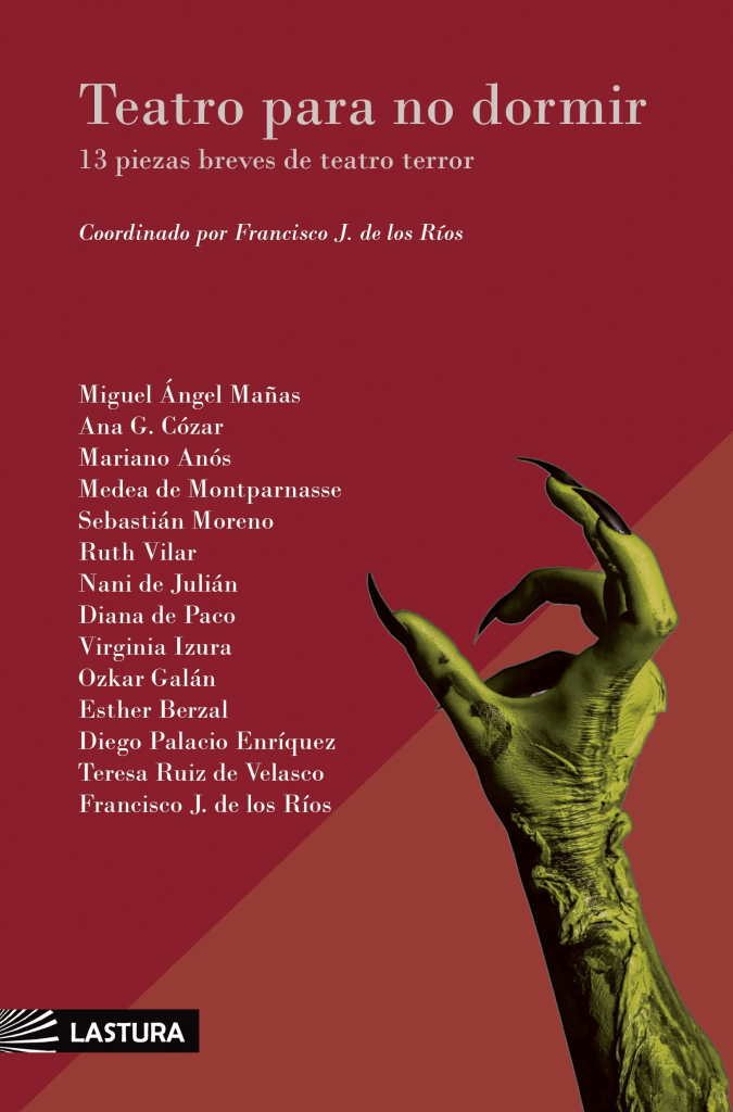 Si conoces esta casa, sabes perfectamente que el teatro de terror nos ha acompañado durante mucho tiempo gracias a Lastura Ediciones y a Francisco J. de los Ríos. Francisco es un dramaturgo de nuestro país que crea obras de teatro terroríficas y que inunda este panorama de piezas insólitas. Tenemos la suerte de que siga en activo y que, además, se dedique —como hace en esta antología— a reunir a otros dramaturgos y escritores para aventurarse en este género tan bonito y, a la vez, tan olvidado.