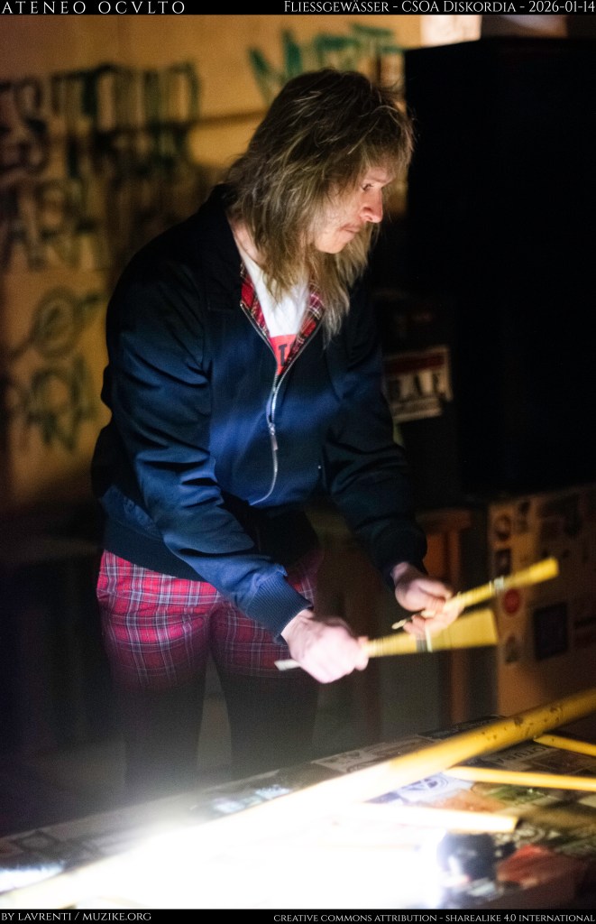 La serie de actos reunidos bajo el título «Ruido en el sótano vol. V«, en el CSO Diskordia, se inscribe en una tradición de prácticas sonoras que desbordan el formato de concierto para situarse en el terreno de la acción performativa, la experiencia colectiva y la intervención. Más que un evento musical, la sesión se configura como un dispositivo estético de fricción, en el que el sonido opera como materia crítica, corporal y simbólica.