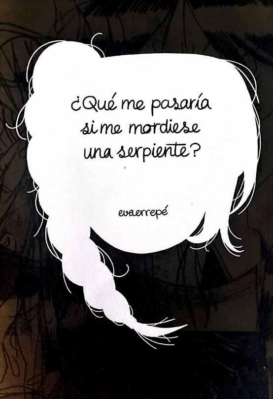 Creo que Eva tiene un sitio reservado en mi estantería y seguramente cada vez en la de más gente. Estamos hablando de una de esas autoras que pertenecen a la escuela del fanzine madrileño, de donde están saliendo cada año más y mejores nombres. Este “¿Qué pasaría si me mordiese una serpiente?” es una pequeña delicia que sé que gustará a más de un crítico de los buenos. Así que haceos un favor y no perdáis de vista a Eva.
