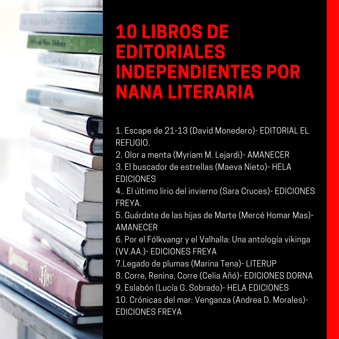 ❤Nuestra querida Nana Literaria ( @NanaLiteraria ) nos ha dejado en el buzón esta lista de 10 obras publicadas por editoriales independientes que todo el mundo debería leer❤¡Dadle todo vuestro amor a los autores y a la recomendadora!