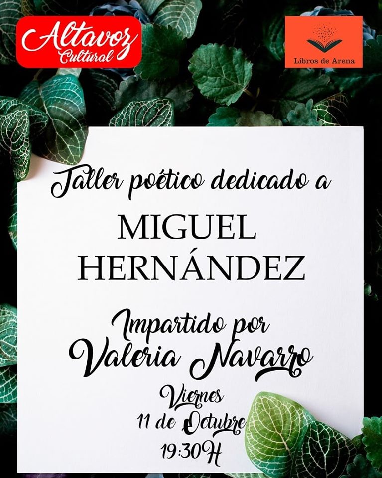 Y como el viento del pueblo, como el rayo incesante, como el grito necesario, llega, sucede y emerge a finales de esta semana el primer taller poético de la temporada, el nuevo imprescindible para todos los amantes de Miguel Hernández y de su obra: este 11 de octubre en Libros de Arena tendremos el placer … Sigue leyendo Taller poético Miguel Hernández