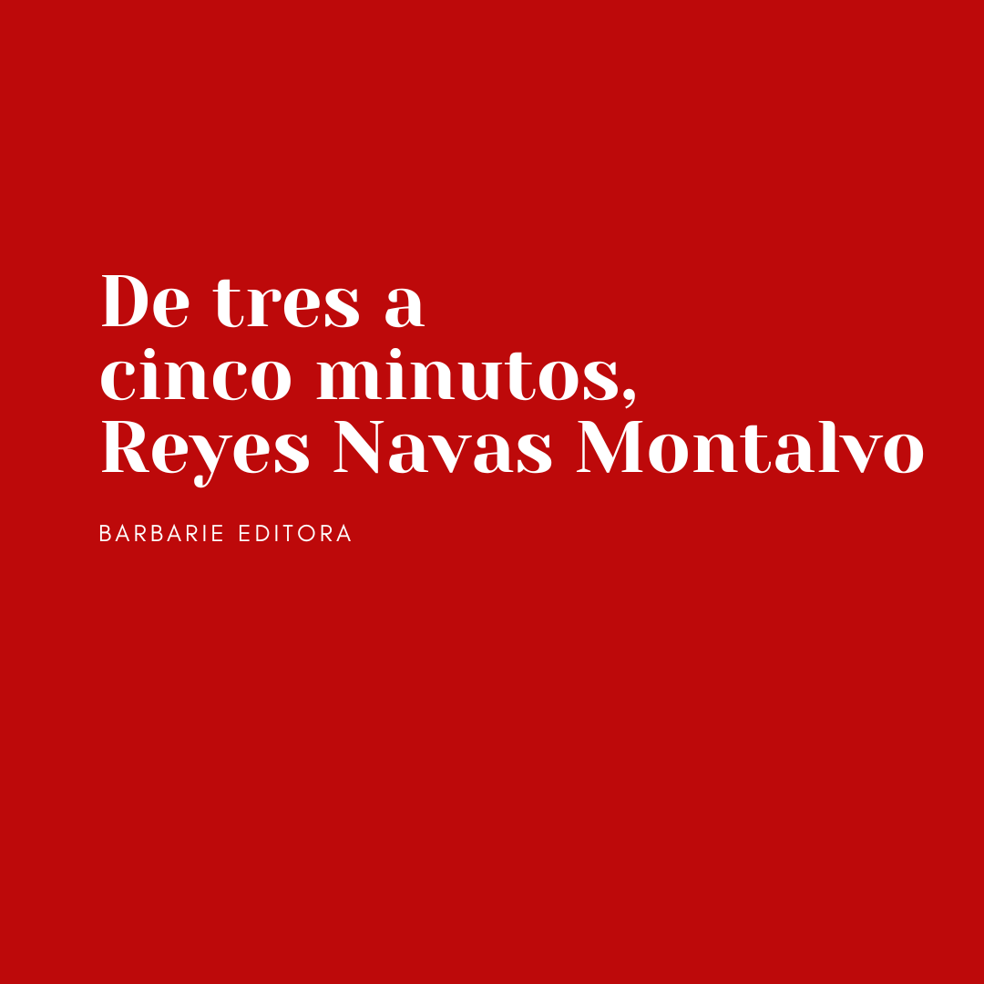 Reyes Navas Montalvo -Barbarie Editora- A veces no sé cómo empezar una reseña de un libro que me ha dejado el alma helada. Esa es la pura verdad. Reyes Navas Montalvo nos trae una historia cruda, esa es la siguiente verdad. Que no sé por qué, pero esta obra me ha dejado el cuerpo raro, … Sigue leyendo De tres a cinco minutos