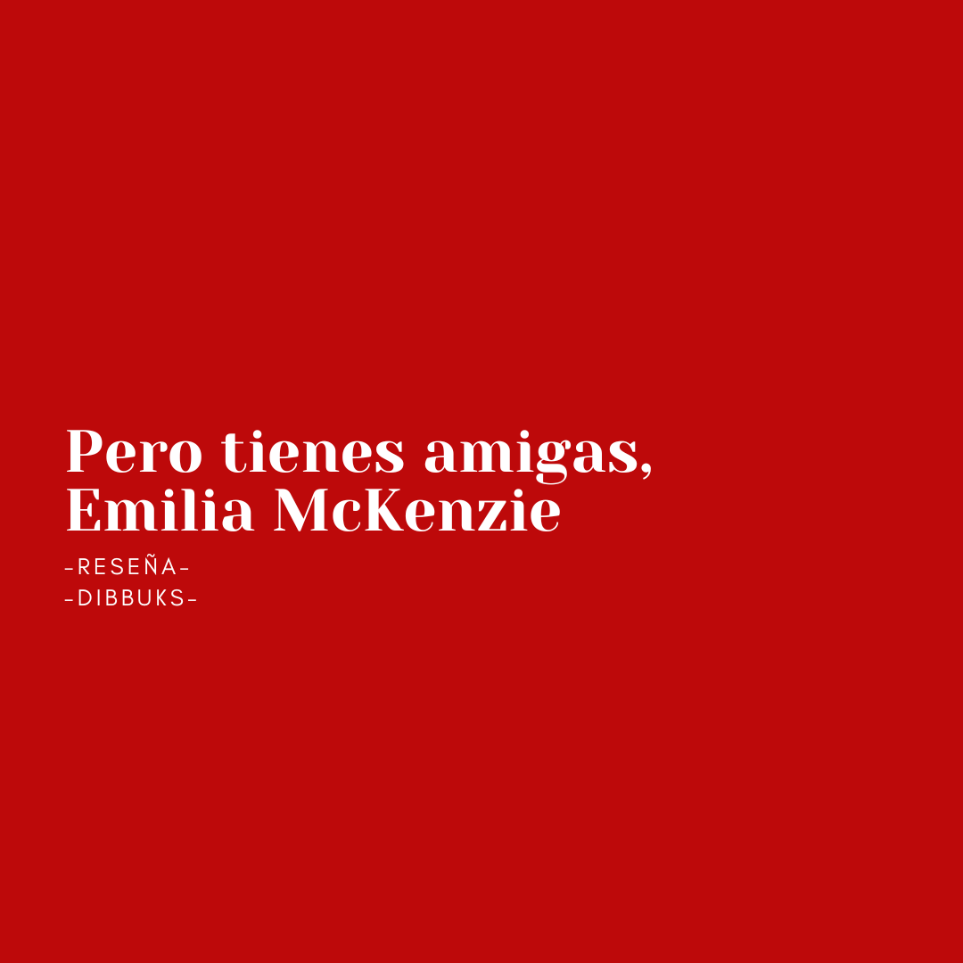 -DIBBUKS- La verdad es que nunca nos sentamos a pensar en cómo sería si perdiéramos a nuestro mejor amigo, porque damos por hecho que solo tenemos que perder a la gente que está por encima de nosotros en escala vital: abuelos, padres, tíos… Pero nunca en cómo sería perder a alguien de nuestra misma edad … Sigue leyendo Pero tienes amigas, Emilia McKenzie