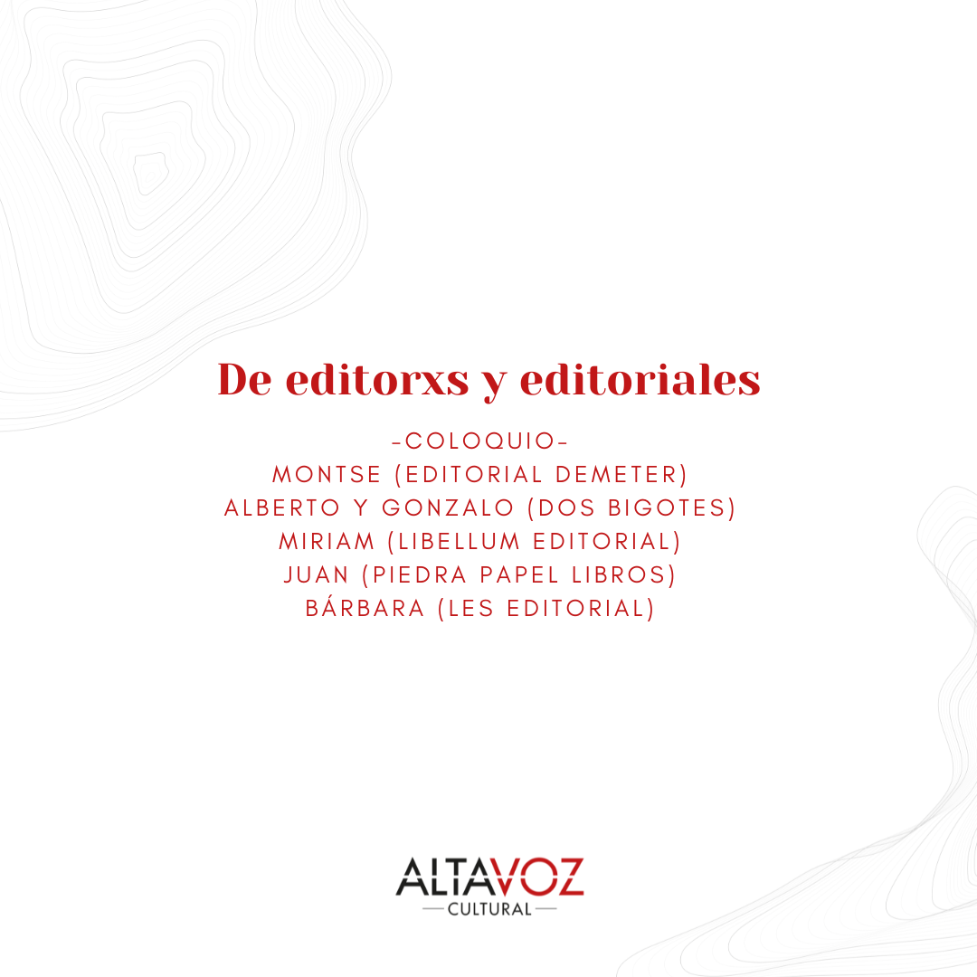 Un coloquio de Altavoz Cultural – Febrero 2026 Montse (Editorial Demeter) Alberto y Gonzalo (Dos Bigotes) Miriam (Libellum Editorial) Juan (Piedra Papel Libros) Bárbara (LES Editorial) -Bienvenides a este coloquio de Altavoz Cultural. ¿Cómo valoráis el panorama editorial actual? ¿Qué es lo que más os agrada y qué es lo que más os preocupa? Montse: … Sigue leyendo De editorxs y editoriales