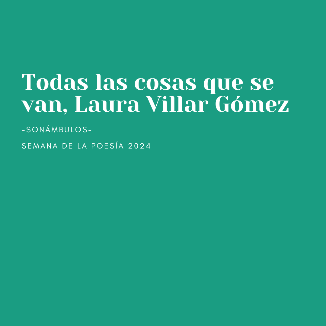 -Sonámbulos- Semana de la Poesía 2024 La voz de Laura Villar Gómez posee una dulzura que escuece. Su paladar está rajado, morado por la feroz actividad expresiva de su lengua: esa que nos habla -o lo intenta- de pérdida, ausencia, nueva realidad posterior a y dolor, uno permanente, cosido a la carne. Todas las cosas … Sigue leyendo Todas las cosas que se van, Laura Villar Gómez