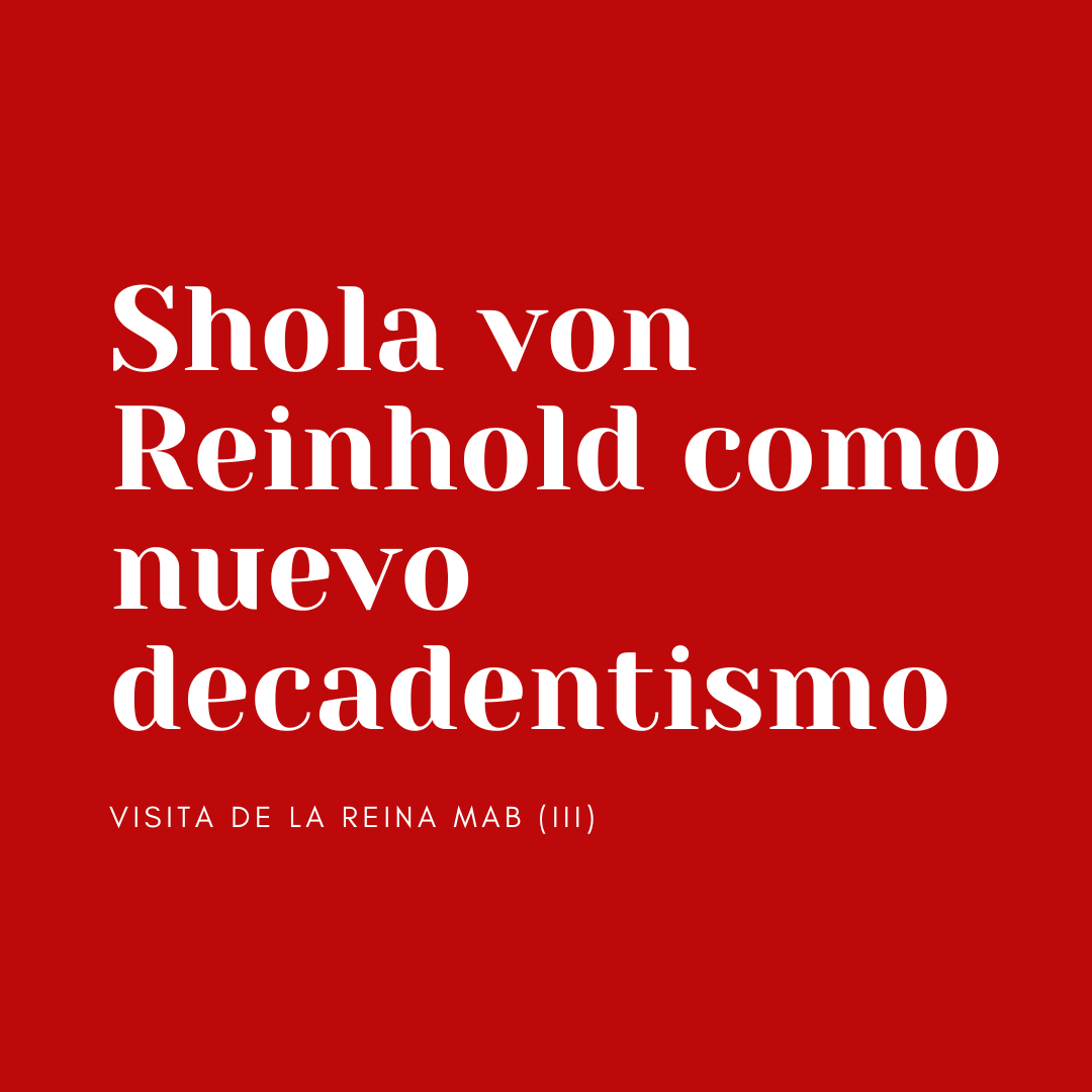 Por Jorge López Llórente Hoy en día cualquier cosa, por banal que parezca, puede ser «decadente»: el comentario de un político, el menú de un restaurante, un vestido cualquiera de ASOS, una canción de discoteca, la civilización occidental (o más bien los comentarios de barra de bar sobre la civilización occidental)… Parece que hemos perdido … Sigue leyendo VISITA DE LA REINA MAB (III):Shola von Reinhold como nuevo decadentismo
